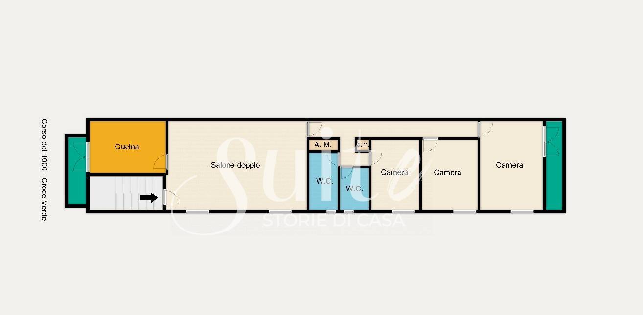 In Corso dei Mille Croceverde, lontana dal caos urbano ma ben collegata, proponiamo in vendita un ampio e luminoso appartamento di 150 mq, situato al secondo piano di una palazzina composta da sole due elevazioni. Lo stabile, non servito da ascensore, garantisce privacy e silenzio grazie alla presenza di un solo appartamento per piano.