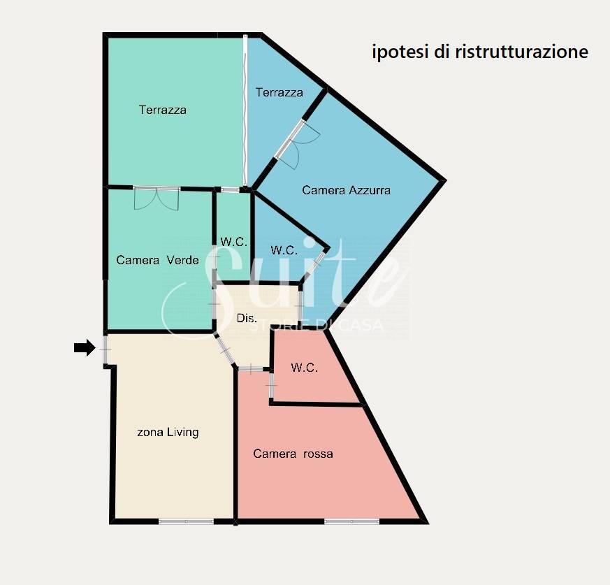 L’appartamento si presenta interamente da ristrutturare, ma proprio questa condizione, unita al prezzo di vendita competitivo, lo rende una soluzione particolarmente interessante per chi è alla ricerca di un investimento immobiliare da valorizzare. La disposizione planimetrica e la doppia esposizione interna permettono un’agevole riprogettazione degli ambienti, rendendo l’immobile adatto sia a un utilizzo professionale (ufficio o studio) sia a una destinazione ricettiva.