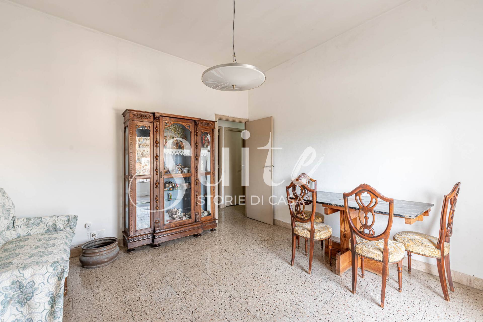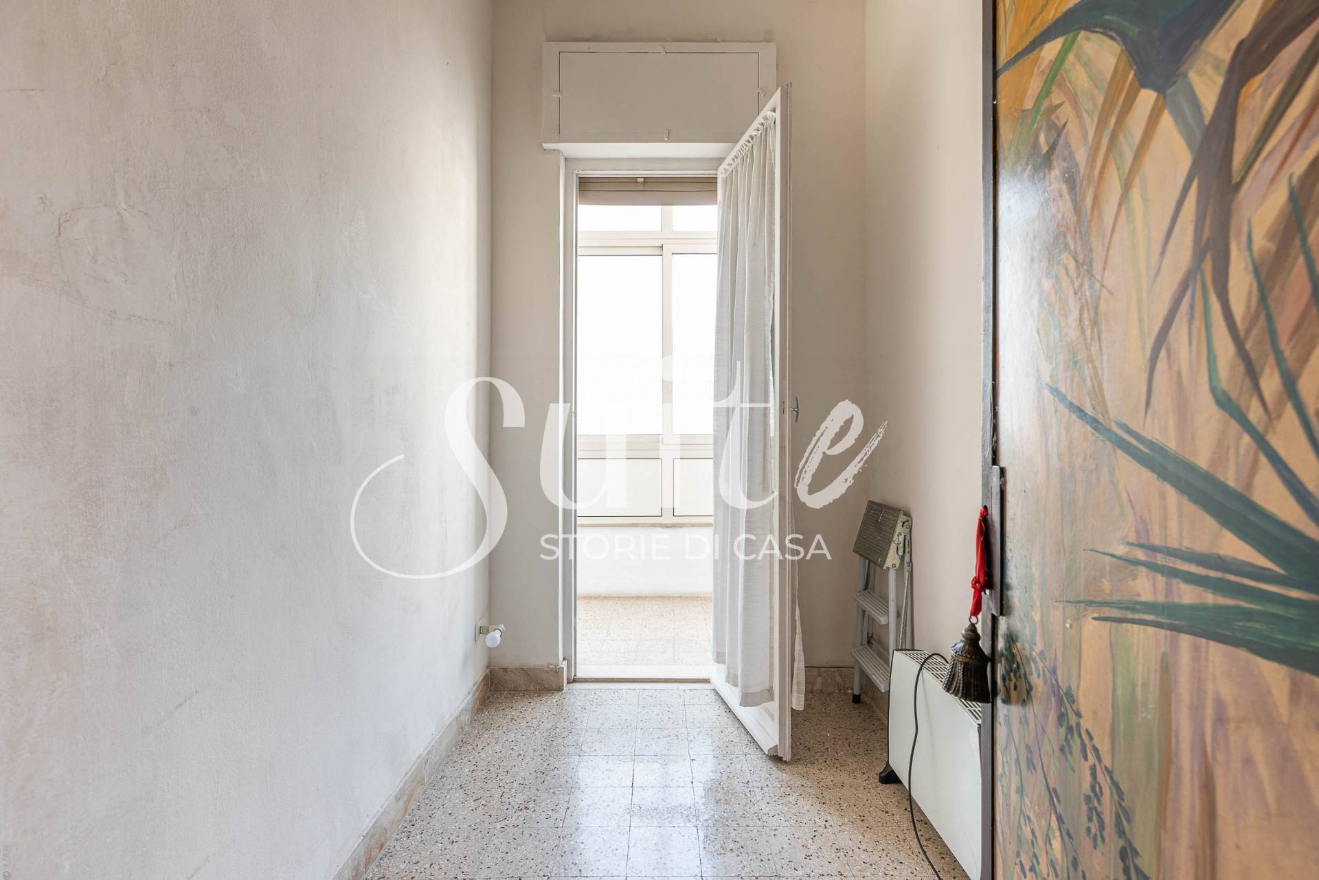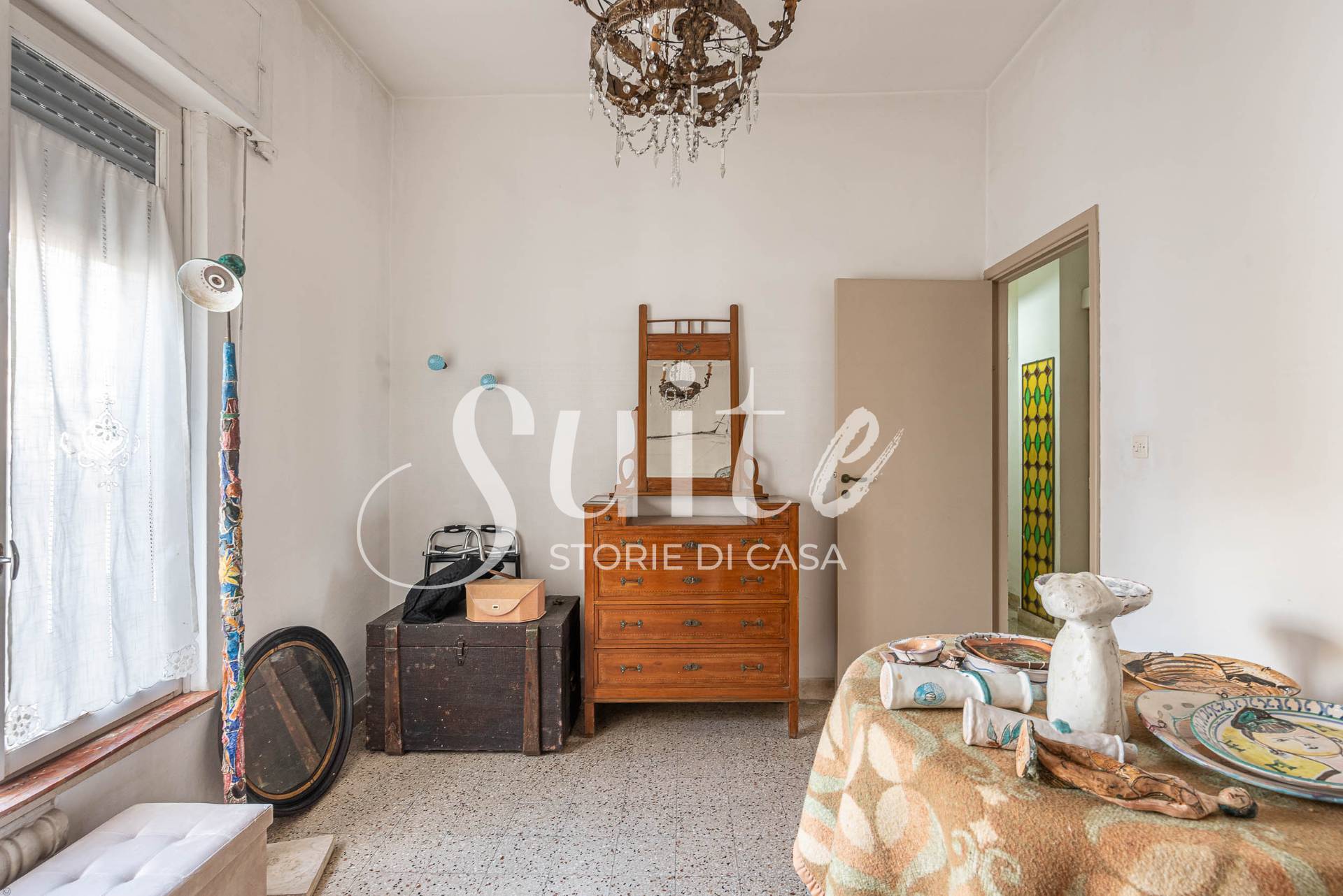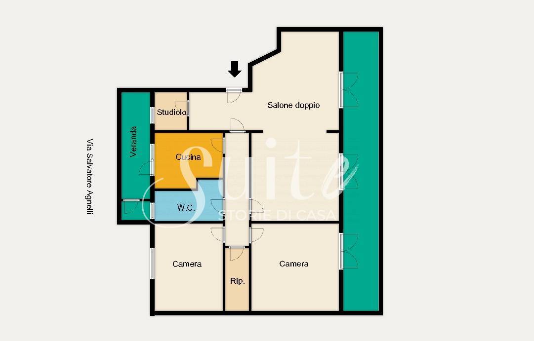 L’immobile colpisce per la sua struttura interna e per alcuni elementi di forte personalità che lo rendono unico nel suo genere. L’ingresso introduce a un piccolo studiolo riservato, celato da una porta in legno dipinta, dettaglio che racconta il carattere della casa. Il salone, ampio e luminoso, è il vero cuore dell’abitazione: qui trovano spazio una finestra, un balcone e soprattutto un vero camino, elemento autentico e sempre più raro, capace di trasformare l’ambiente in uno spazio caldo, accogliente e di grande fascino. La cucina è separata e dispone di accesso diretto alla veranda, mentre la zona notte ospita due camere da letto, una delle quali con balcone. Completano la proprietà un servizio e un comodo ripostiglio.